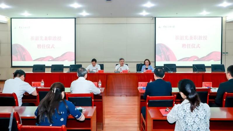 党委书记、校长廖祥忠为崔韶光教授颁发聘书,并指出,崔韶光教授讲述八路军的故事、讲解太行精神30余年,是在用真情传递信仰,用信仰传递信仰,用灵魂传递信仰。从她的身上,我们看到了一名共产党员的初心使命和责任担当。聘请崔韶光老师担任兼职教授,既是学校深化党史学习教育的重要举措,也是壮大思政课教师队伍的有效方式。他希望马克思主义学院教师同崔韶光教授多交流,多学习她的授课技巧,努力提升思政课教学水平。同时,学校已与太行公务人员学院签署战略合作协议,双方可以深入开展课题研究,打造富有中传特色的思政资料库,全面提升思政课课堂教学质量。