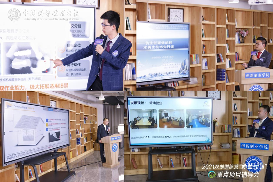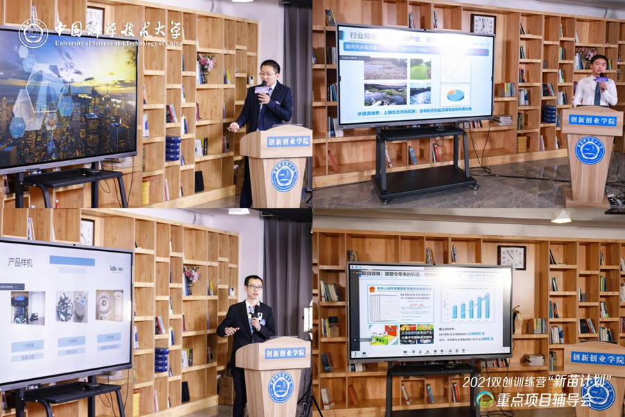 中国科大双创训练营“新苗计划”是为学生“双创基金”支持项目量身打造的专项辅导计划,旨在通过项目指导和展示交流等活动培育学生“种子期”创新创业项目和团队,使其成长为创新创业“新苗”。本次系列“重点项目辅导会”是对本年度中国科学技术大学在各类双创赛事中崭露头角、表现优异且有较强发展意愿的项目及团队进行更高水平、更面向实战的项目辅导,以进一步优化项目目标、提升团队能力。参与活动的同学们在活动中充分感受并高度赞赏我校“以赛促创”“面向实战”“重在培养”的双创教育理念。