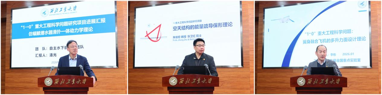 航海学院院长潘光、研究生院院长朱继宏、力学与交通运载工程学院院长李栋作“1→0”项目交流汇报。